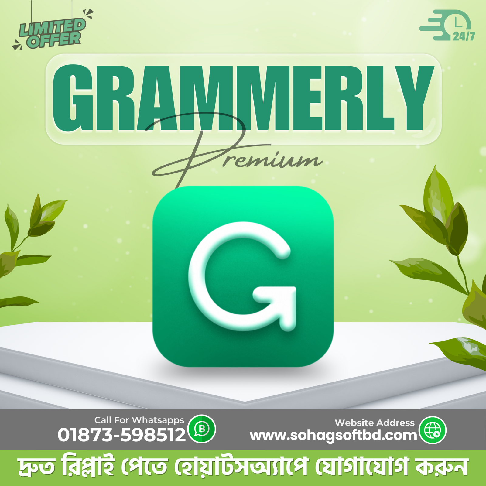 ✅Grammerly Premium ✅(১মাস ১৫০)(৩মাস ৪০০)(৬মাস ৭৫০)টাকা 🔰(Share)Email এবং Password দিবো। 🔰Login করে,ব্যবহার করবেন। 💳আগে Payment করতে হবে। 📦Delivery-সময়:২মিনিটের মধে। ✅বিস্তারিত Order On WhatsApp ক্লিক করুন👇